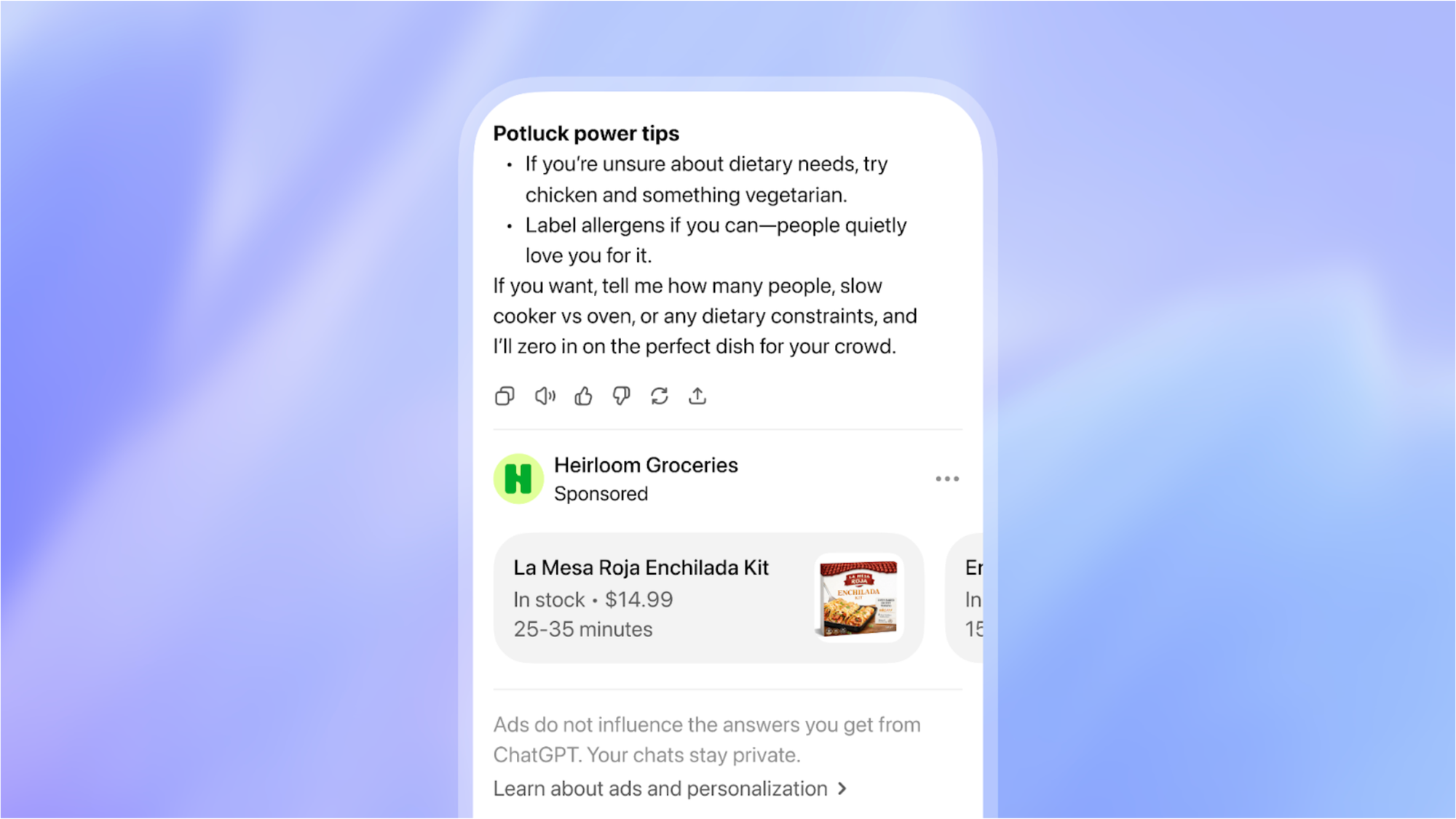 Los anuncios sugieren que, después de aconsejarnos como tiene por costumbre, ChatGPT podría colarnos un vale descuento del mejor postor, o sugerirnos una demo de una herramienta más cara que la que nos habría recomendado antes.